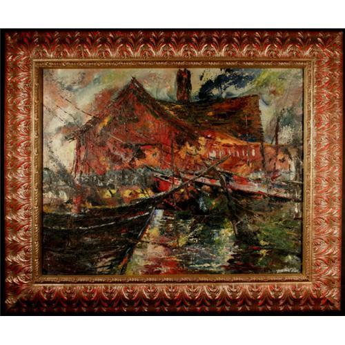 This fantastic blend of colors and excitement is striking oil on wood panel painting and is an impressive example of Robert W. MacIsaac?s abstract artistic genius. Indicative to his outstanding individuality as an artist, MacIsaac depicted an absolutely stunning maritime scene that is composed of exquisitely chosen and fascinating colors. The artist?s application of paint, in addition to his brilliant color, conceives an exquisite composition of energy and excitement. The strong sense of vigor is conveyed through the artist?s unique style of paint application, which is highly expressive and pleasantly effective. MacIsaac?s masterful creation forms a picture that displays a remarkable achievement in the depiction of an extremely unique maritime scene. This painting is without a doubt one of the finest among MacIsaac?s truly original one of a kinds.