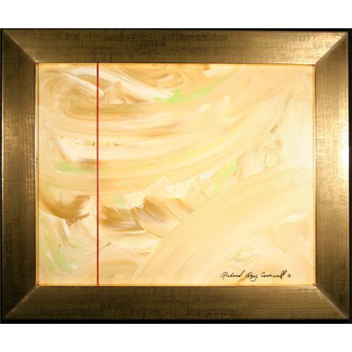 This stunning contemporary modern painting is an absolutely intriguing composition that is composed of rich, deep texture and astonishingly beautiful color. A truly gifted artist with an amazing and versatile style, Richard R. Cornwell expresses his abstract expertise in this truly remarkable painting. This extremely attractive abstract picture is truly captivating with its imaginative and amazingly textured predominantly yellow background juxtaposed with a distinct vertical red line. Mysterious and charming, Cornwell created a truly original artwork that pays tribute to modern expressionist works of the past, including a revolutionary approach to color, paint application and subject matter. The contrast of the beautifully defined red line and the expressive background create a complimentary balance, which makes this painting a truly remarkable one of a kind.