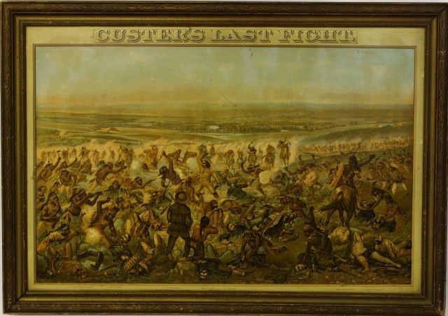 in original wood frame, reverse with original Custer 7th Cavalry decal, framed 30 1/2" X 44". Est. 400-750