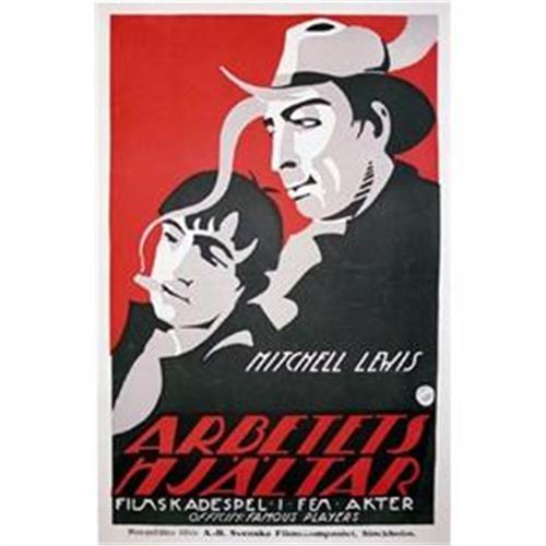 Arbetets Hjaltar (Hjälter). Workers Hero. Original 1920's lithographic film poster for Sweden. Features Mitchell Lewis. Filmkadespel. Linen backed. Excellent condition. Ready to frame. Art Deco time frame. The silent cinema timeline usually spans from about 1891 to 1929. Rare.
