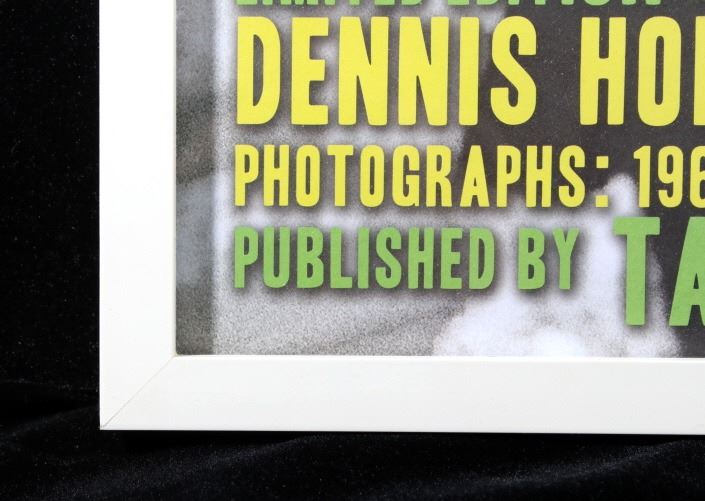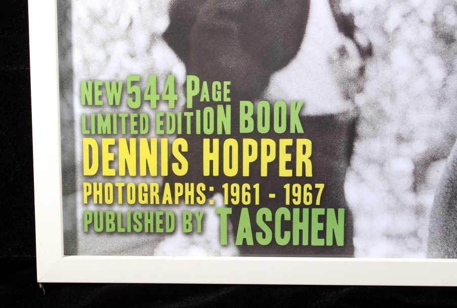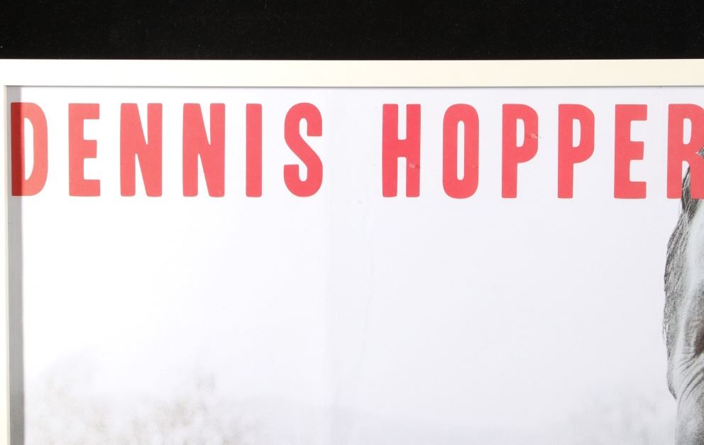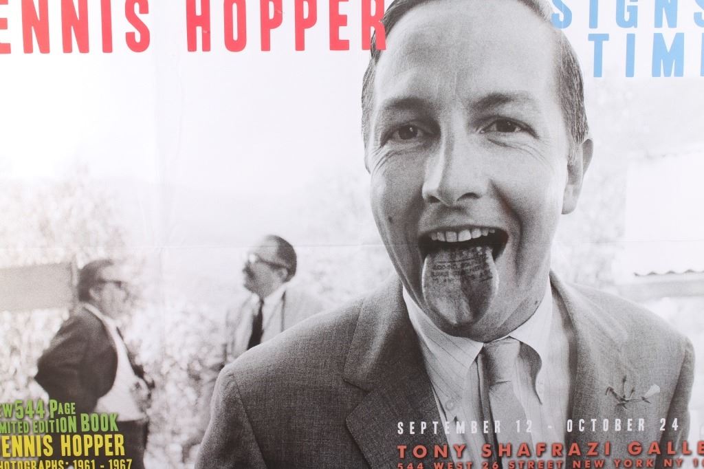 Included in this lot we have a original Dennis Hopper framed "Signs of the Times" poster originating from 1966. Dennis Hopper (1936-2010) was an American actor, artist, photographer, and film director. He is best known for his roles in the films Blue Velvet, Hoosiers, Easy Rider, and has been nominated for numerous awards. The poster is from his art show, featuring photographs and art of various celebrity figures, as well as his newly released limited edition book. The poster shows the image of a man sticking his tongue out with writing stamped across its surface. The piece is marked across the front reading "Dennis Hopper Signs of the Times - New 544 page limited edition book Dennis Hopper photographs 1961-1967 published by Taschen - September 12 - October 24" with information on the art gallery. The poster is set into a white frame with a wall hanging mount. Provenance: From the renowned Sundog Fine Art Bozeman, Montana collection and collected by Bruce VanLandingham. Bruce VanLandingham was a pillar in the American Indian collecting community and a respected expert. Along with being an avid collector Bruce also was the sole owner of Sundog Fine Art Gallery in Bozeman which was both part museum and gallery. The piece shows good condition overall with two creases in the poster where it was folded for shipping. The frame measures 37" wide by 25" tall.