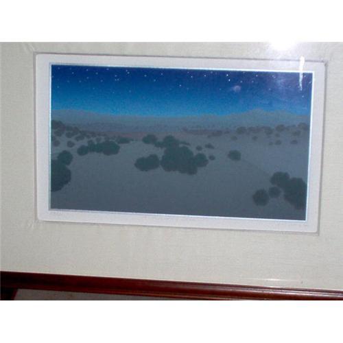 Artist signed original print. Titled A Mystery Within and numbered in pencil 53/120. Signed lower right -may be a serigraph. Evening desert scene. Strikingly beautiful piece in estate found deep mat and deep walnut frame. Age unknown, but probably not more than 20 years old. Someone out there must know who this artist is! Photo later.