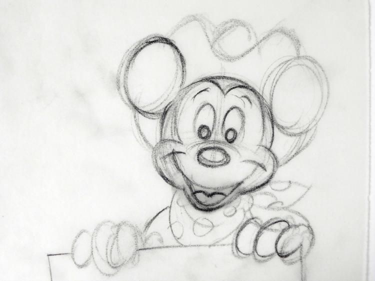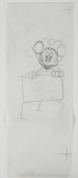 Mickey Mouse is a cartoon character created in 1928 by Walt Disney and Ub Iwerks at The Walt Disney Studio. Mickey is an anthropomorphic mouse and typically wears red shorts, large yellow shoes, and white gloves. He is one of the most recognizable cartoon characters in the world and is the mascot of The Walt Disney Company, the world's largest media conglomerate in terms of annual revenue. Mickey debuted in November 1928 in the animated cartoon Steamboat Willie after initially appearing in a test screening earlier that year. He went on to appear in over 130 films, primarily in short films, but also in a few feature-length films. Nine of Mickey's cartoons were nominated for the Academy Award for Best Animated Short Film. In 1978, Mickey became the first cartoon character to have a star on the Hollywood Walk of Fame. Howdy partner, how are you doing on this fine day?? Original "rough" animation drawing on wax paper, in black pencil. Overall Size: 14" x 5 3/4" Very Good condition Traditional animation is a multi-step process which includes various types of art techniques. Drawings are a key part of the process, in which the animator creates the design and movement of the characters. Drawings are then transferred onto acetate cels (by hand-inking and/or photo copying) to create a production cel, which is then hand painted on the back side, using paint colors chosen and approved by the creator of the series. This drawing is ready to framed and matted. There is a small rip to the top of the drawing and creases/folds to the bottom of the drawing.