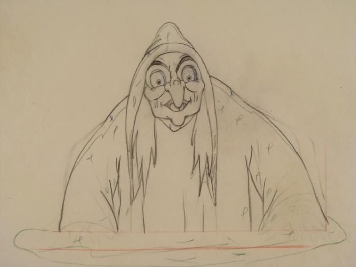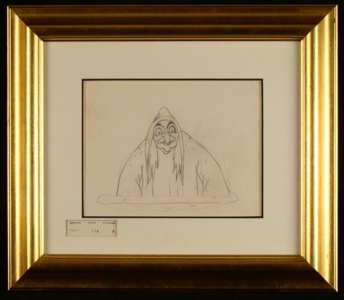 Snow White is considered a Disney classic, and itbreath-taking animation. The witch was an unforgettable villain, and this original production drawing captures some of that menacing persona.