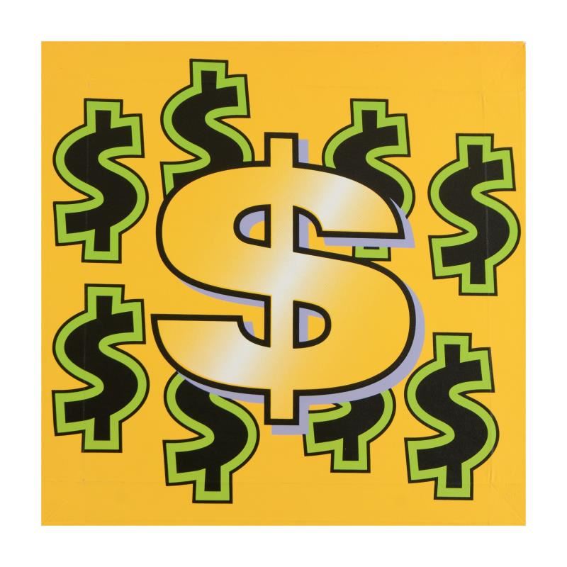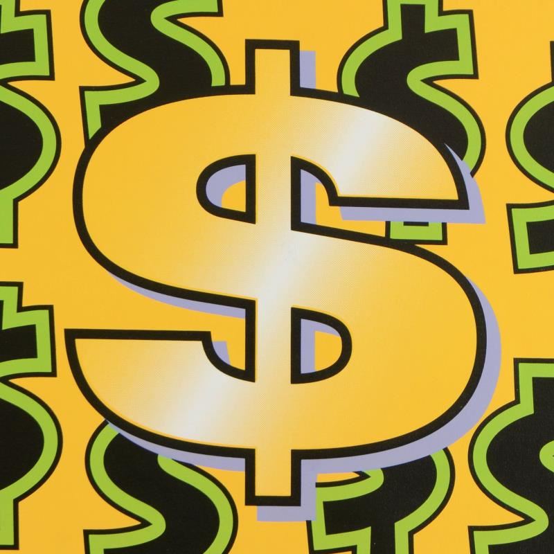 "Dollar Sign" is a limited edition hand pulled silkscreen on canvas by Andy Warhol protege Steve Kaufman (1960-2010). This piece is numbered 2/50 and hand signed inverso. Includes Certificate of Authenticity. Measures approx. 24" x 24" (image).