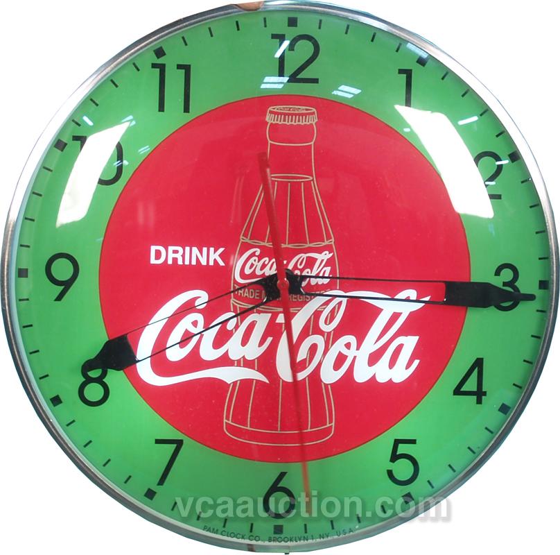 Original Drink Coca Cola Light-Up Pam Clock, works in great condition - 14" diam