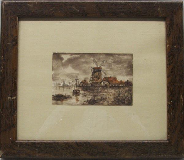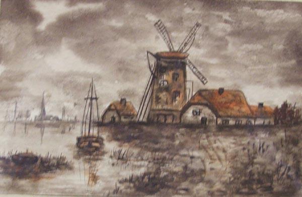 Original Dutch Watercolor, measures approx. 6.25'' x 4'', matted, framed, and under glass. SHI $25.
