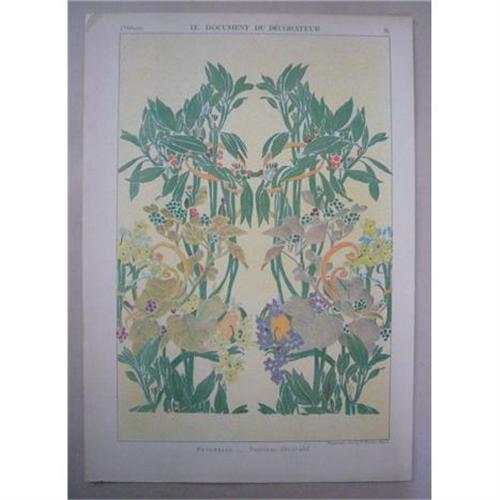 From "Le Document du Décorateur" by various artists, these prints were used at the turn of the last century by designers and decorators as inspiration for wallpaper, interior design, ceramics, and all manner of home decor. This print has minor folds in some corners. Exquisitely colored and detailed they will be beautiful framed (alone or in a grouping)... These prints were purchased in Europe - PLEASE NOTE THAT ALL OF OUR PRINTS, POCHOIRS AND POSTERS ARE ORIGINAL, NON REPRODUCTION WORKS.