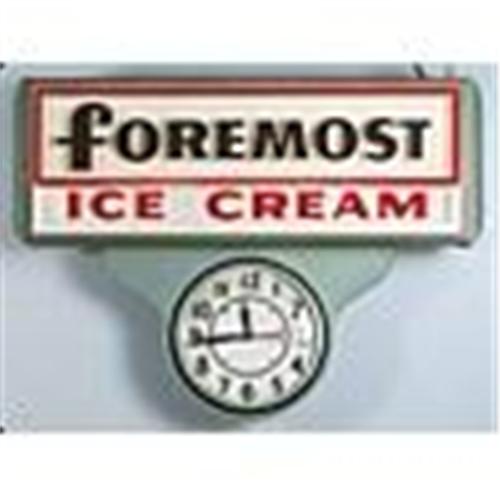 This wall clock is an advertisement for "FOREMOST ICE CREAM". It has a fully functional clock. It measures 25.5" across x 19" down. The florescent light is not in working condition. This item will be expensive to ship.