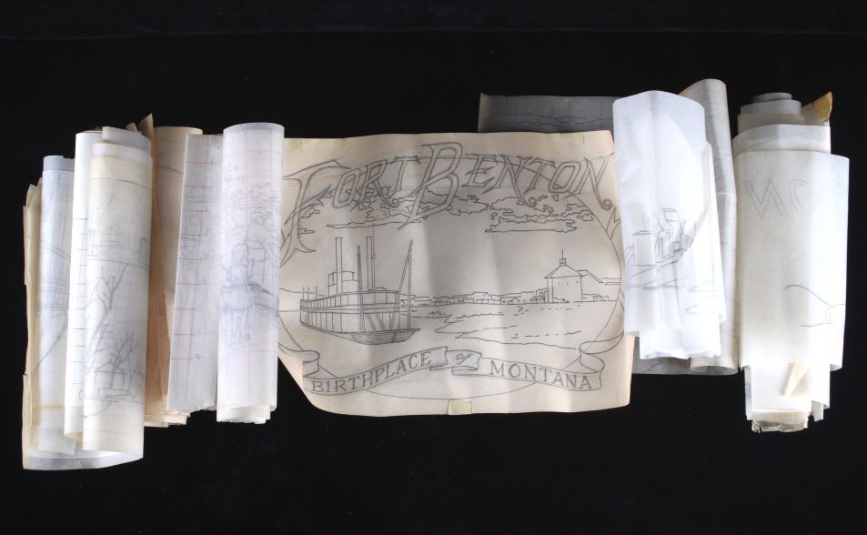 Featured in this lot is this collection of original Fort Benton, Montana sketches and stencil from the early 1900's. There a 22 total sketches in this collection. The collection shows sketches from the countryside around Fort Benton, Montana, including sketches of the ferry, wildlife, two boys sailing, and a buffalo. The condition of this collection of sketching stencils is good, with some browning to the sketching paper, denoting the age. The measurements of these sketches range from 14" x 8 1/2" to 12" x 8 1/2".