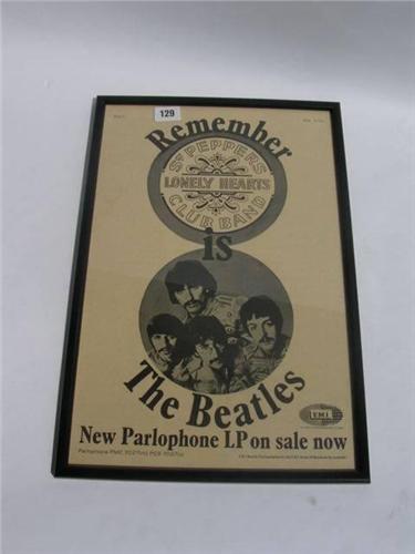 Original Framed Beatles Sergeant Pepper LP Advert dated 6th June (1967) 12”x 19”