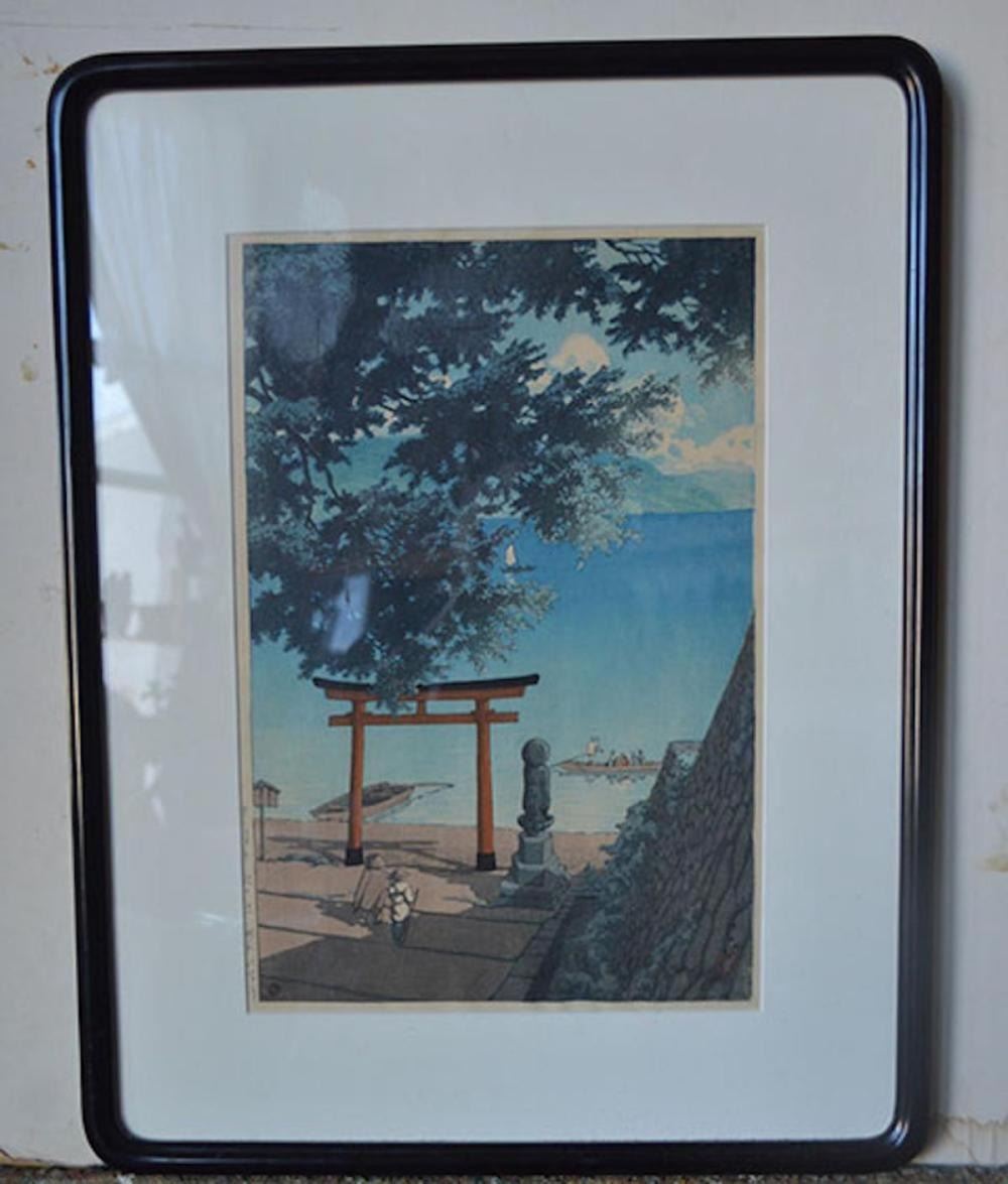 Original Framed Hasui Japanese Woodblock Print- "Chuzenji Lake". FINE CONDITION, Approximately 21 x 16.5 inches