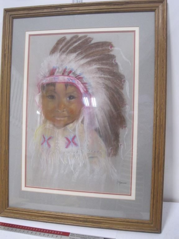 Original, Framed Pastel, First Nation Boy
