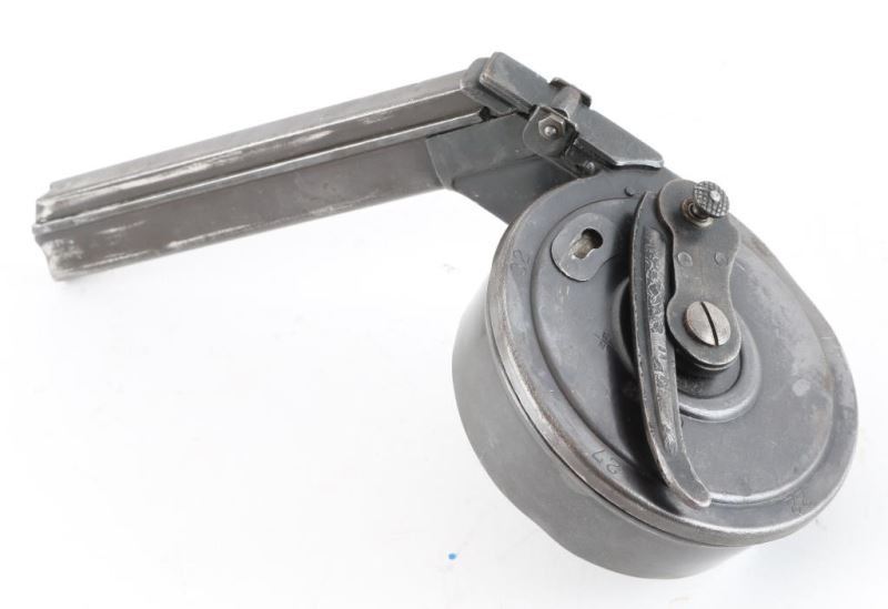 Magazine of type used with artillery Lugers, circa WWI. Most original blue with a dent on the edge normal imperfections. B/N Marked 210890.