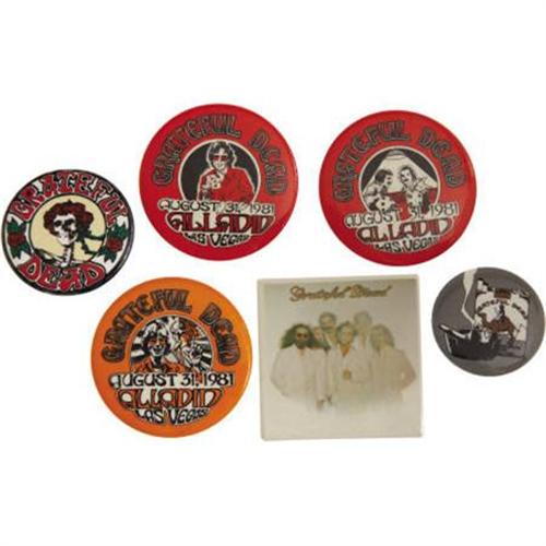 <B>Original Grateful Dead Photographs and Related Memorabilia.</B></I> Included are three 8" x 10" color photos of the Dead in concert, framed to overall sizes of approximately 10" x 12"; a limited edition, numbered commemorative plate featuring Jerry Garcia on stage; a set of set of six vintage Grateful Dead pins, most from 1981; and an unused, limited edition backpack from J. Garcia Designs with the tag still attached. All are in Very Fine condition with very minor wear.<BR><BR><b>Shipping:</b> Miscellaneous Collectibles, Larg (<a target="_blank" href="http://www.heritageauctions.com/common/shipping.php">view shipping information</a>)