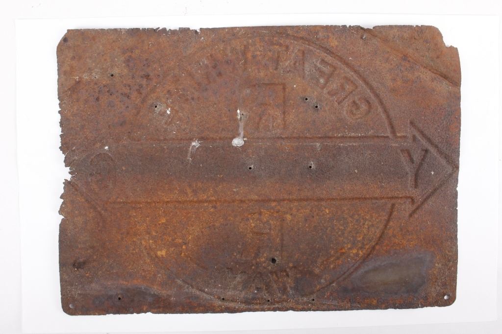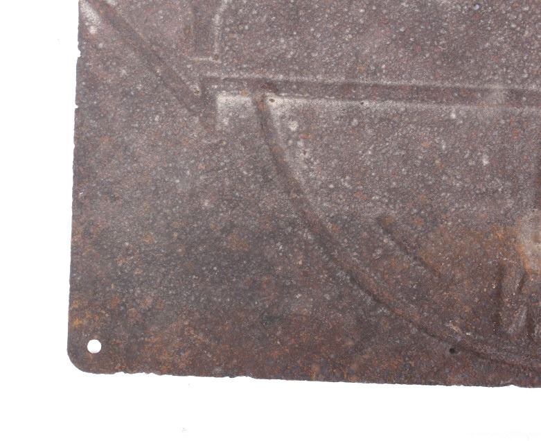 This is an original Great White Way highway sign from Montana. The Great White Way was a short lived Auto Trail that connected Yellowstone National Park to Glacier National Park in the 1920's. By the mid 1920's, most of the states were receiving federal funding for highways and a numerical system was beginning to be used to standardize the highway system. Many Auto Trails were becoming obsolete or renamed under this newly adopted system. This sign shows an arrow in the center with "Y" and "G" at either end. The circle that encompasses the arrow reads "Great White Way". The sign is additionally marked with two embossed "R" - The signs would indicate "R" or "L", as to which direction to stay for either Yellowstone or Glacier Parks. Though considered an auto sign it also has direct ties to the Great Northern routes in Montana to Glacier and Yellowstone - The Great Northern adopted the use of the signs in the early days, when the highways failed to help point the way to the Great Northern rail depot station. This is a RARE and desirable Montana highway sign. The sign shows fair condition with heavy rust and damage as shown. The sign measures 10" x 14".