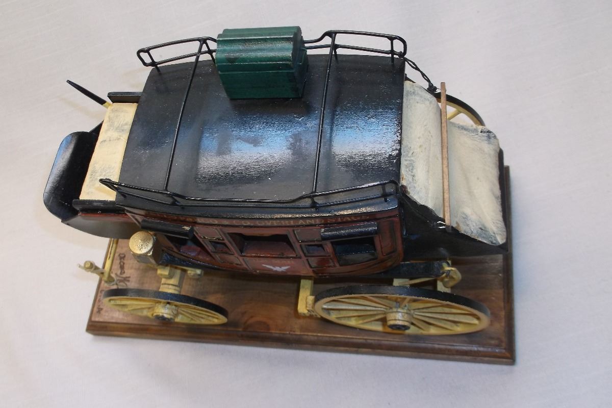 Original Hand Made Wells Fargo Stagecoach- Made and Signed by Miniature Builder Oscar Cortes in Cali