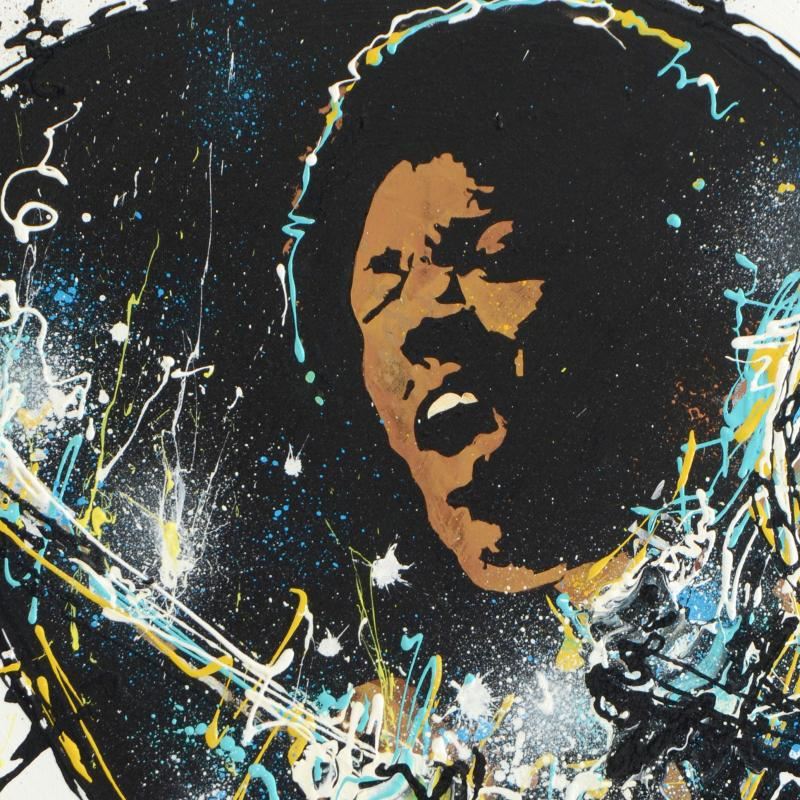 "Hendrix Rocks" is an Original acrylic painting on canvas by KAT. This piece is hand signed by the artist and comes gallery wrapped, ready to hang. Includes Certificate of Authenticity. Measures approx. 18" x 18" (image).