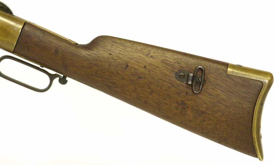 with standard 24" octagon barrel. Top of barrel marked Patent Oct 16 1860 manufact'd by The New Haven Arms Co. New Haven CT. Barrel displays a pleasing blue brown original patina, sharp markings and edges, barrel fitted with original adjustable rear leaf sight, receiver shows a nice untouched honey brass color with light dings and scratches as would be expected. Right side shows period lightly scratched letter H, wood stock having been heavily sanded resulting in poor fit to metal, original serial number putt plate intact. An interesting Henry that was purchased from the Lyons family by a now deceased collector. Enclosed documents list Patrick Lyons as a member of the 66th Illinois Volunteers Infantry and was designed as a regiment of western sharp shooters. A large portion of these men purchased and used Henry Rifles as their weapon of choice. Listed in Madis Book of Winchesters is rifle serial number 4178 (only 18 serial numbers away from this Henry) which is inscribed "G. Burkhardt. Co. H. 7th Ill. Vol. In." Includes original handwritten letter from Patrick Lyons to the then Governor of Springfield IL. in regards to a claim for disputed pay and a copy of his muster role. Rifle remains mechanically sound with nice tight action and very good bore. NO FFL required.