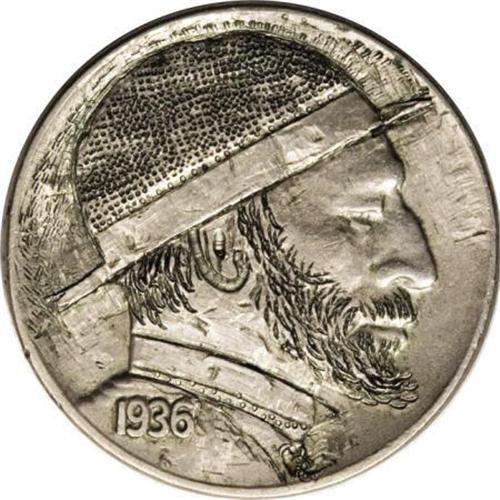 <B>Original Hobo Nickel on 1936 Coin.</B></I> A nice, original, Above Average hobo nickel by an unknown carver. The host coin is a 1936 nickel. This piece has a stippled hat dome and a wide hatband. There is a small ear, partially under the brim, and the profile is unaltered. Scraggly hair and beard. The field is completely dressed. A nice, eye-appealing carving.<BR><BR><BR><b>Shipping:</b> Coins & Currency (<a target="_blank" href="http://www.heritageauctions.com/common/shipping.php">view shipping information</a>)
