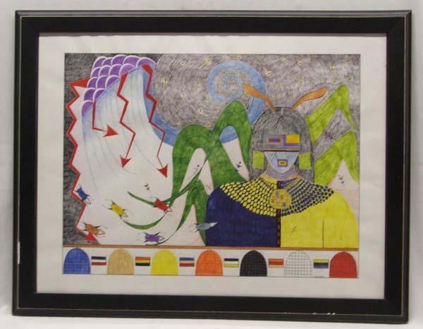 Original Hopi Native American Painting by Panda, visual measures 15x20''. Buyers Pay Actual Shipping and Handling Charges(see terms and conditions for more information)