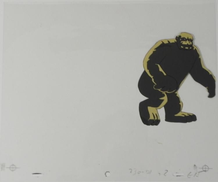 The Herculoids battled to defend their planet from menaces on * Amzot/Quasar and from outer space. All of the Herculoids displayed * Human-level intelligence - employing precision teamwork and complex * tactics - as well as emotions, and Zandor and Tara both * displayed a working knowledge of complex alien technologies as well as * the ability to pilot interstellar spacecraft—but essentially, Zandor, * Tara, Dorno, and the Herculoids were fighting to keep Amzot/Quasar a * technology-free, primitive planet. This is further * indicated by the pseudo-barbarian outfits of Zandor, Tara, and Dorno * and the fact that technology was used mainly by the various villains, * but rarely if ever by the heroes. Although the "speech" of their * companions was limited and repetitive, Zandor, Tara * and Dorno demonstrated that Gloop and Gleep, at least, had a * comprehensive mode of communication, and that they could at least * understand and interpret this language. * * * * **The cel is at least 35 years old. * * It's party time people... And trust me, you don't want me to be there for it... * * Original Animation CelSize of * cel: 10 1/2" x 12 1/2"Very good; very minor wear to the cel * This is * an original hand-painted cel set-up * used in the production of an episode of "Herculoids." Each one-of-a-kind * set-up represents a slight change in position of the characters. When * individually photographed and projected in rapid succession, * the images * appear to move. To create production cels, the original animator's * drawing is * transferred onto an acetate cel (by hand-inking and/or photo copying). * The cel is then hand-painted on the reverse side. * * The cel is ready to be matted and * framed. The notations are located at the bottom of * the cel. * *
