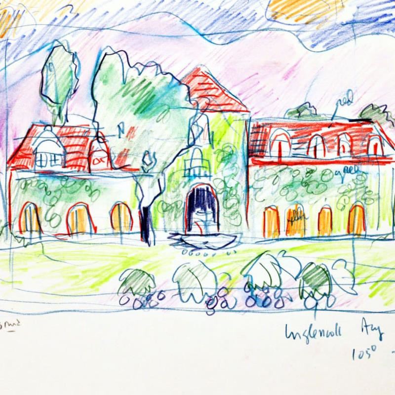 "Inglenook Winery, Napa Valley" is an original Mixed Media on Paper by Wayne Ensrud. The piece is hand signed by the artist and comes with a Certificate of Authenticity. Measures approximately 14" x 17".