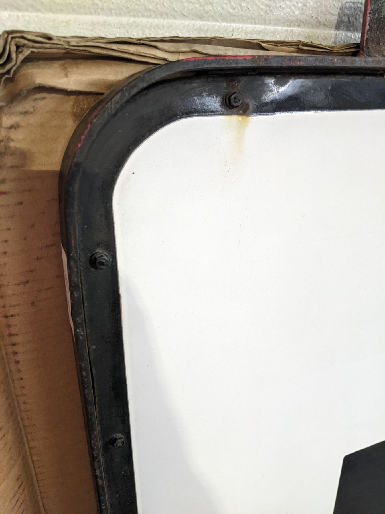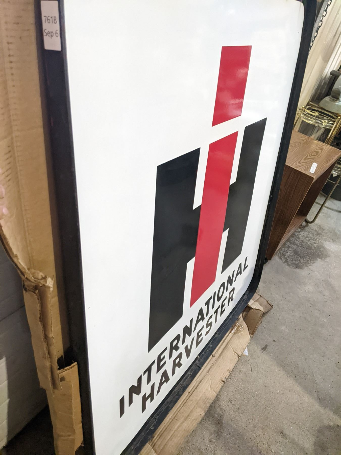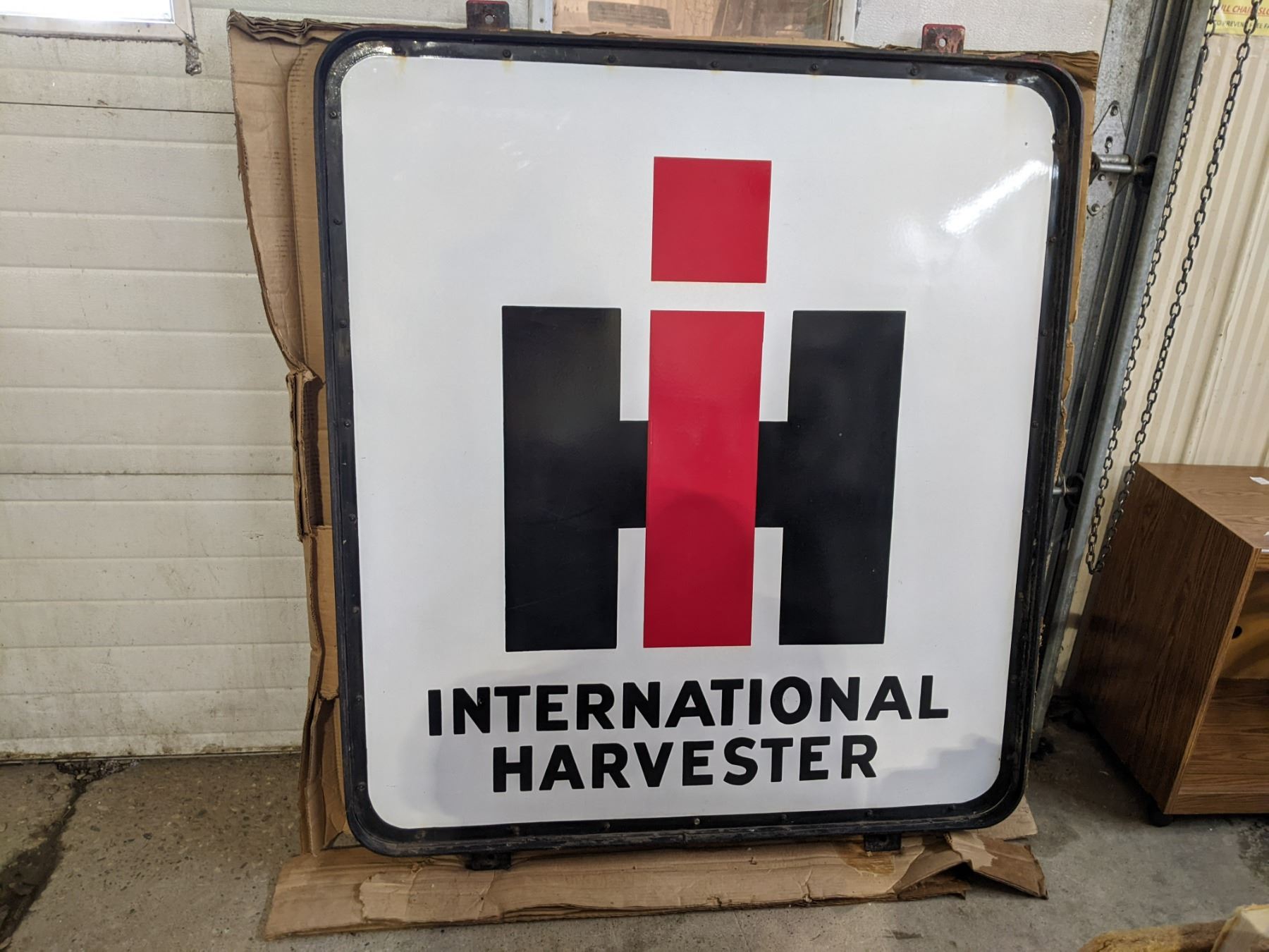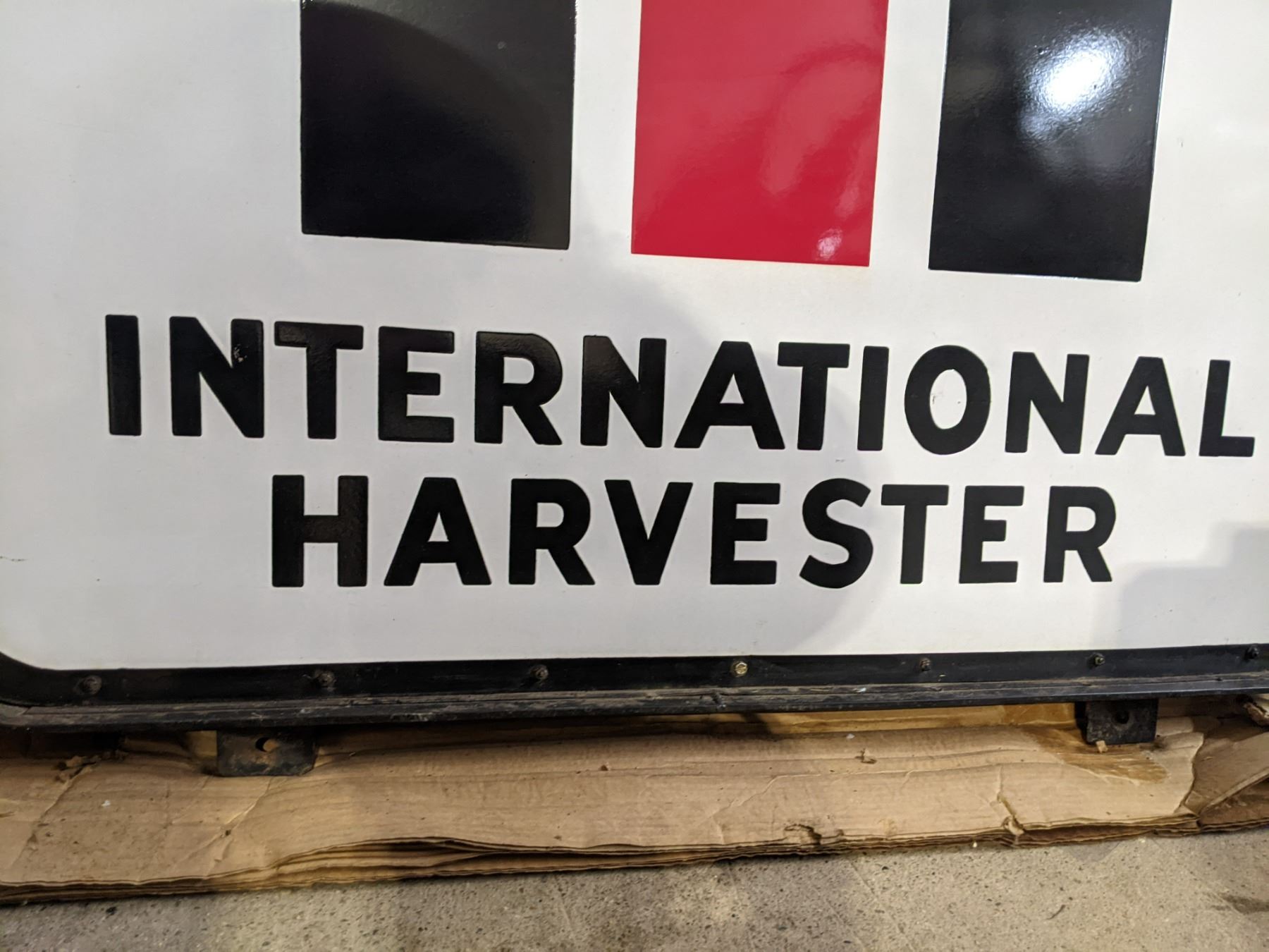 Original International Harvester (IH) Rural Dealership Sign - Porcelain, Steel Frame, 1 sided, from the original family ownership - 49.5" Wide by 54" high (58" high with brackets)