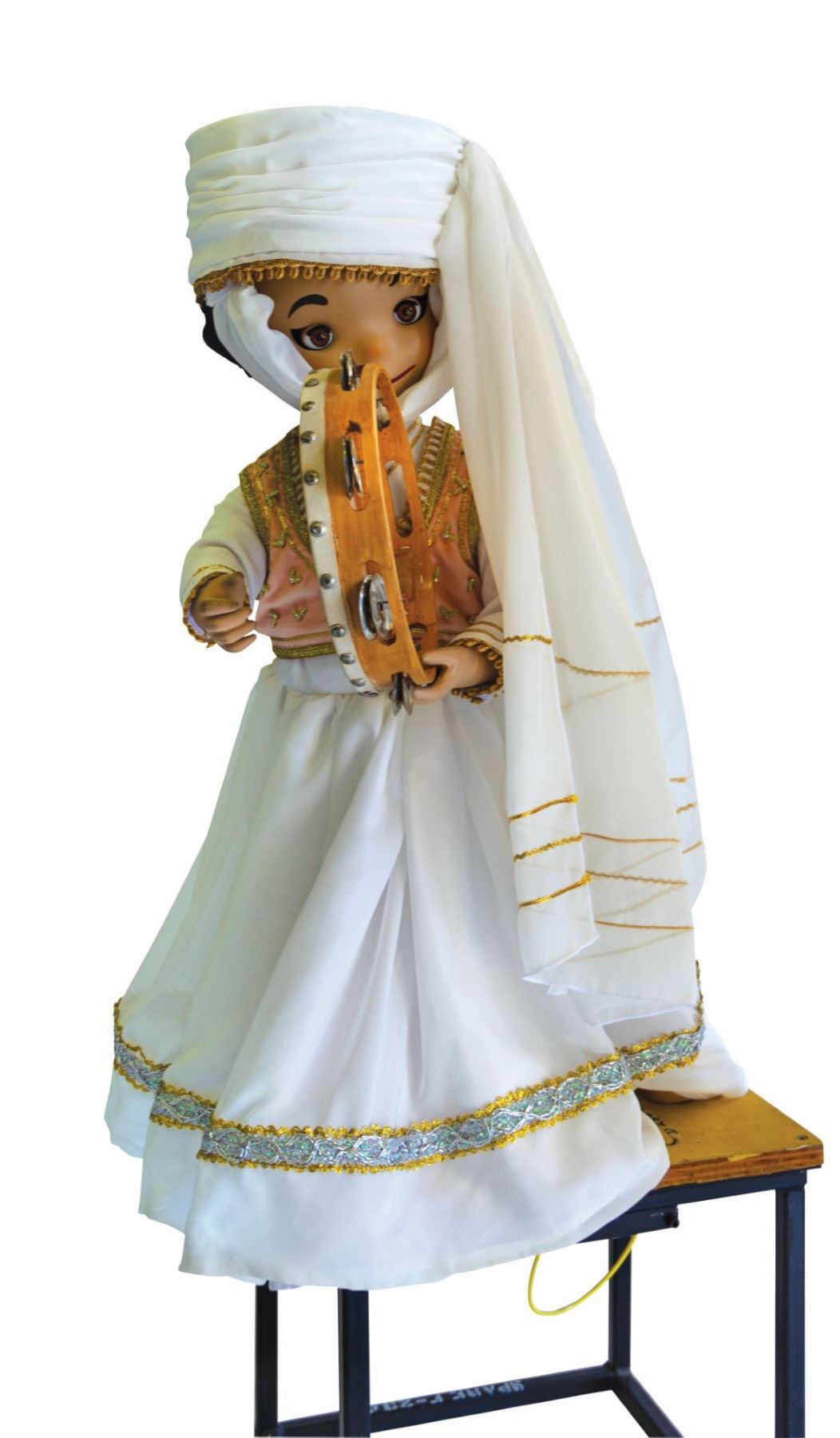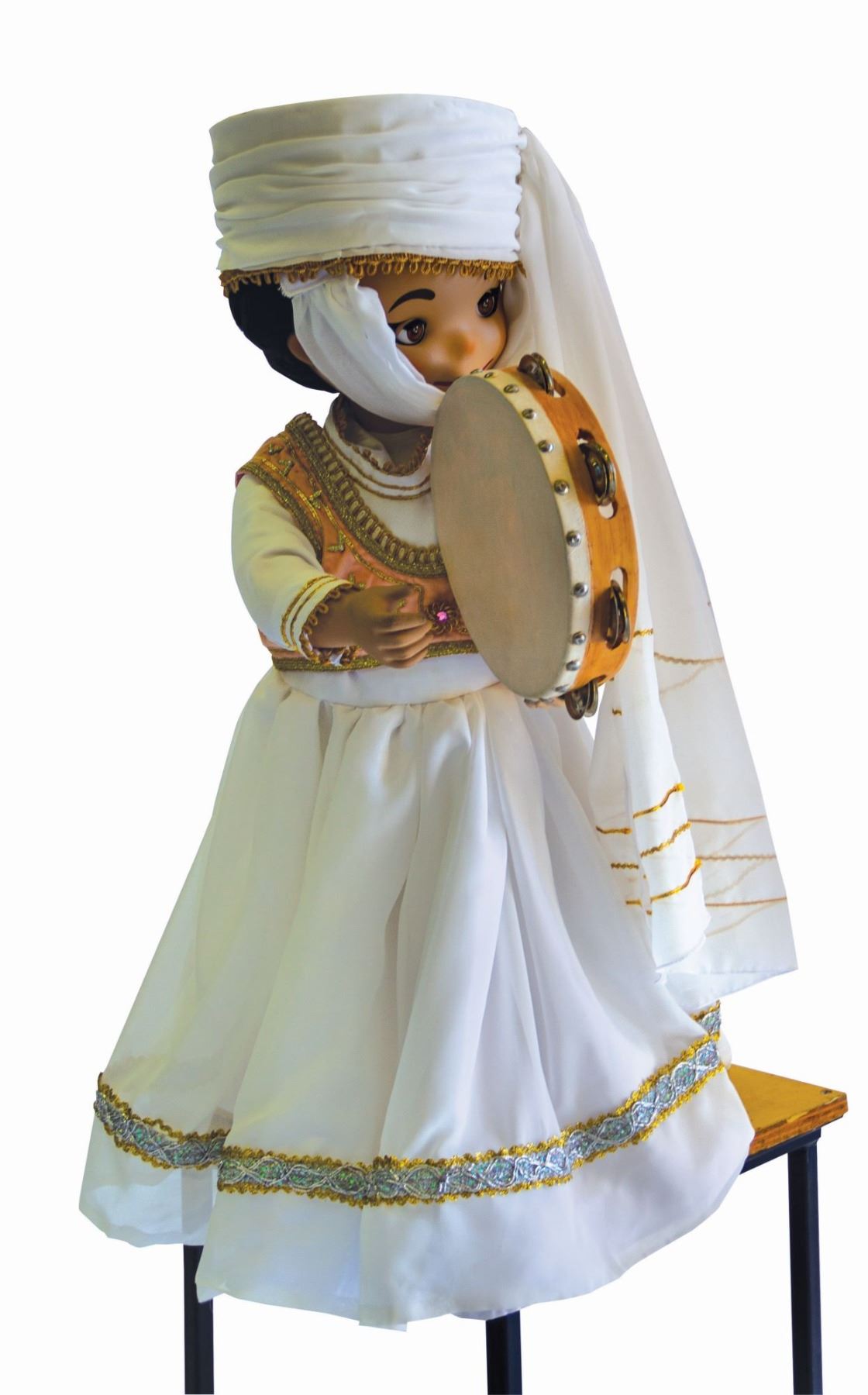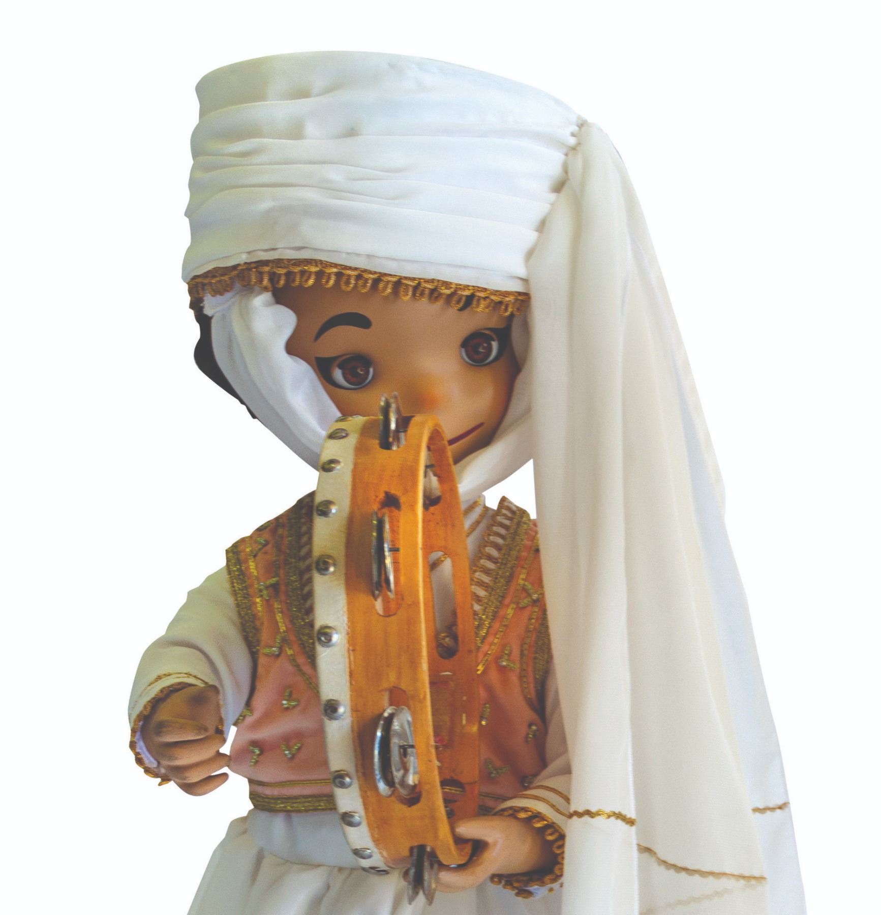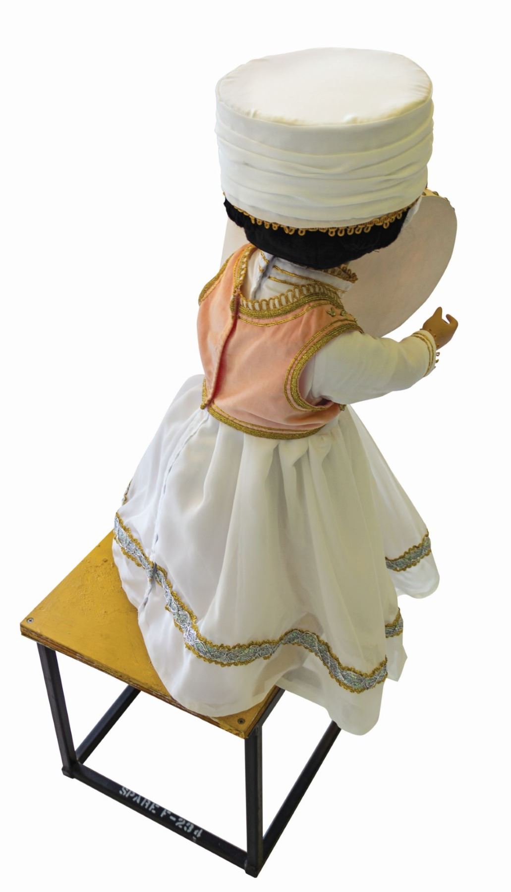 (Walt Disney World, c.2000s) An original animatronic doll from It's a Small World at the Magic Kingdom. This doll features vinyl hands, legs, and head and includes its original prop wardrobe items. The inner animatronics are complete, and the original base has wiring that is labeled to blink the eyes and to have the right hand move to tap the tambourine. Full animatronics such as this are some of the rarest and most difficult to come by Disney Parks collectibles, with this particular prop beautifully representing the characters of this iconic attraction. The doll measures 30" tall, not including the stand, and is in very good condition with minor surface wear and some slight wear to the hair by the right eye. The doll has clothing with a Disneyland Resort label, however it is not uncommon for clothing props like these to have been swapped between the parks. This item will require special shipping arrangements. Please contact us for details and estimates.
