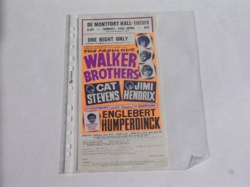 Original Jimi Hendrix Concert Handbill 5 ½”x 11 ½” from De Montfort Hall, Leicester 16 April 1967 with The Walker Brothers, Cat Stevens etc in EX condition. Flyer still has it’s original Booking Form.