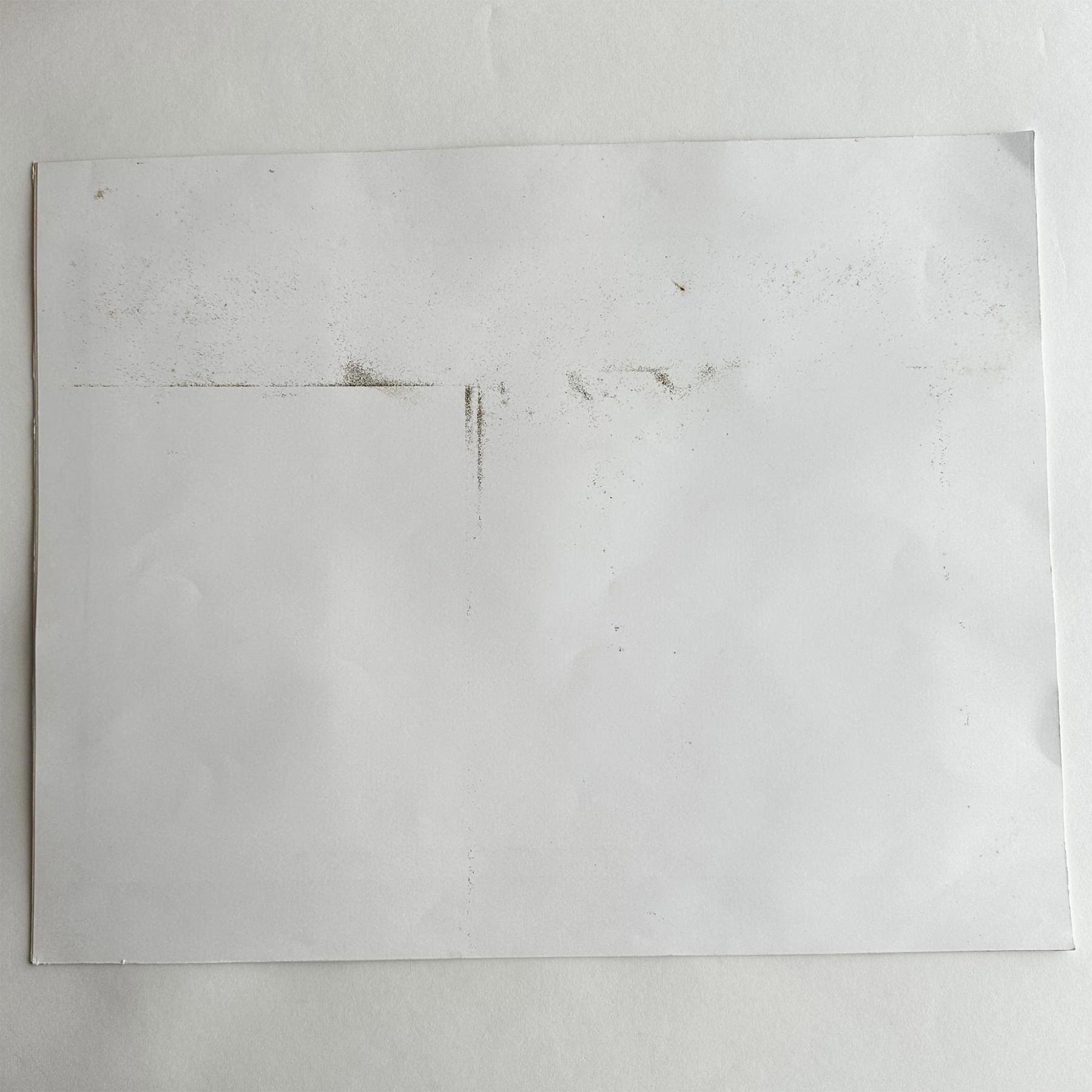 Large original color photograph on glossy paper of an abstracted landscape and nebulous sky that the artist shot with neutral blues, whites, and beige-browns. Signature in silver ink on lower right: illegible. Photograph dimensions: 15.75"L x 11.50"H. Mat size: 19.75"L x 15.50"H. Artwork can be unframed and rolled for shipment.