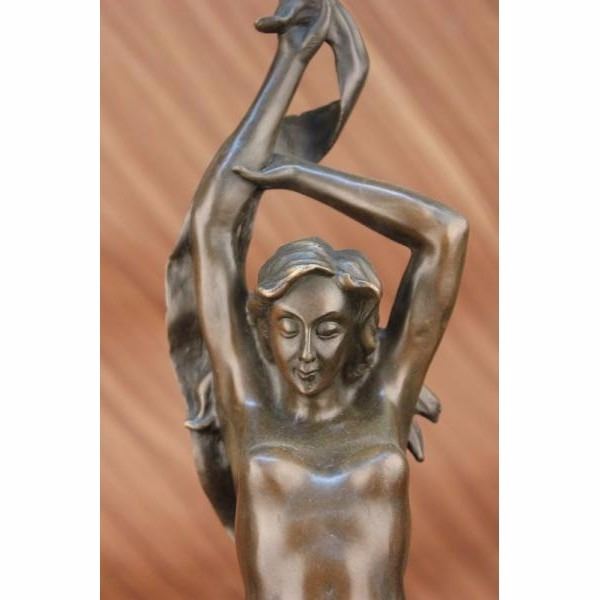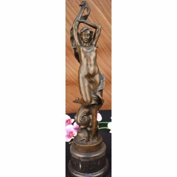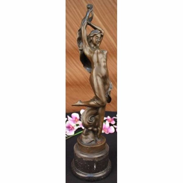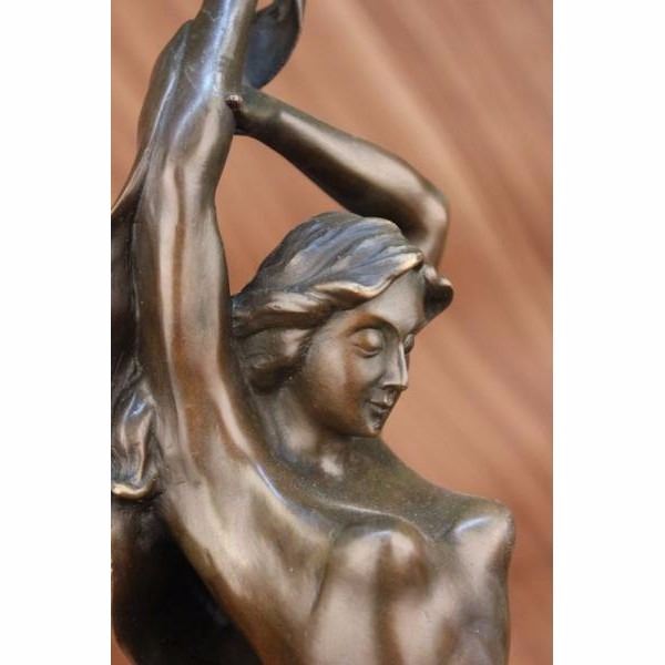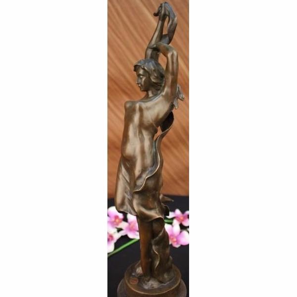 Think Bronze, takes pride in our superb collection of museum quality Bronze Statues, handpicked from the finest artistries using old world standards around the globe. The attentions to the intricate details of these luxurious works of art are amazing and the brilliance of the figures unsurpassed. From art Nuevo to art deco, wildlife nature to equestrian, classical to contemporary, religious to renascence or nude, you will find a remarkable assortment of diverse Art forms and sizes, coupled with undeniable values makes Think Bronze a fantasy playground for art collector and lover in you. Condition: This sculpture is in a good condition. Bronze Dimensions with Marble Base:Height 20" x Width 5" Marble Dimensions: Diameter 5" Height without base: 17 " Weight : 15 LBS Inventory : 33B0775533