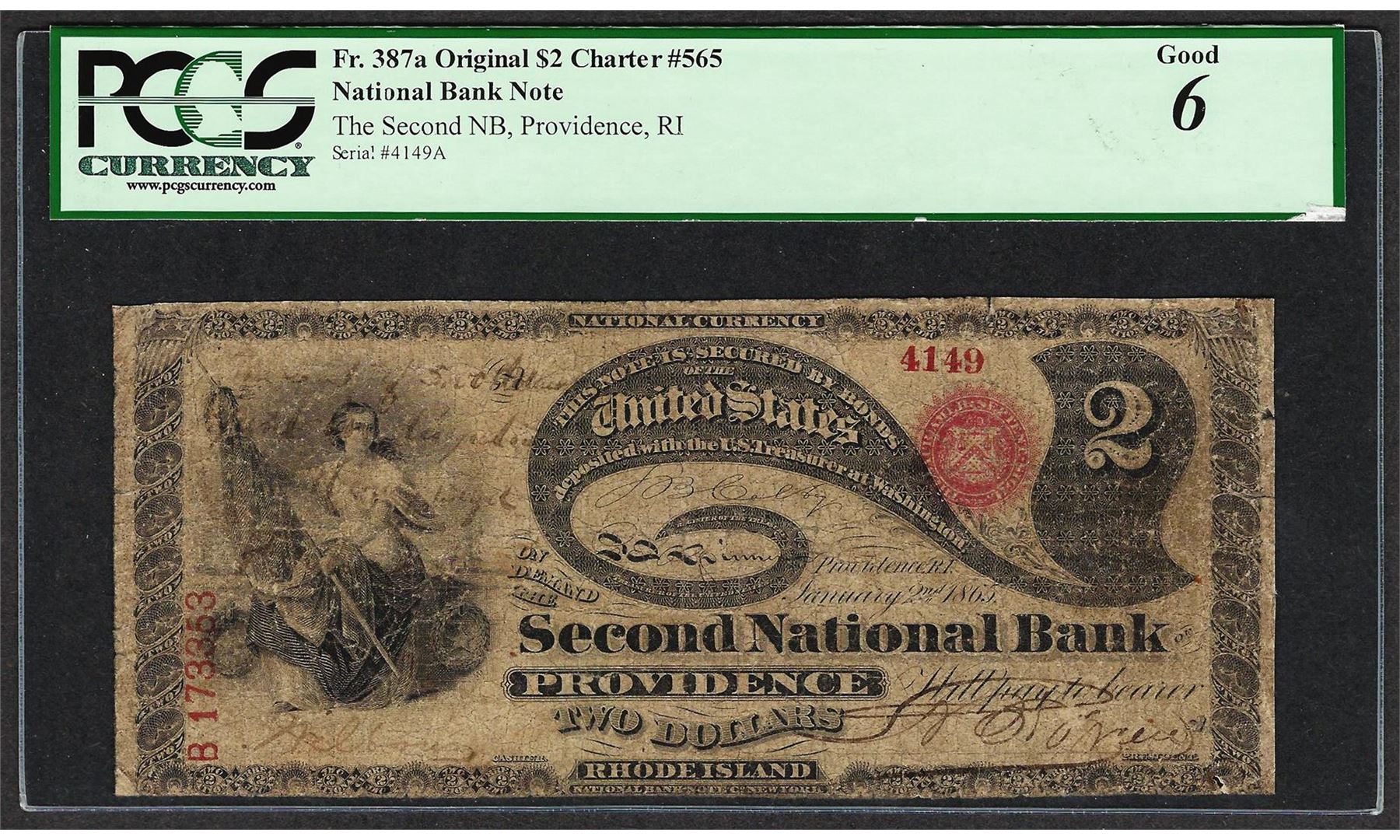 One Original Lazy Deuce $2 Second NB of Providence, RI CH#4149 National Note PCGS Good 6. PCGS Graded.
