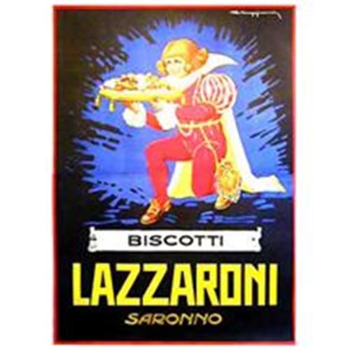 Original Italian food poster for Lazzaroni. Stone lithograph in A condition on linen ca 1930s. 39 x 27". Certificate of Authenticity is provided.