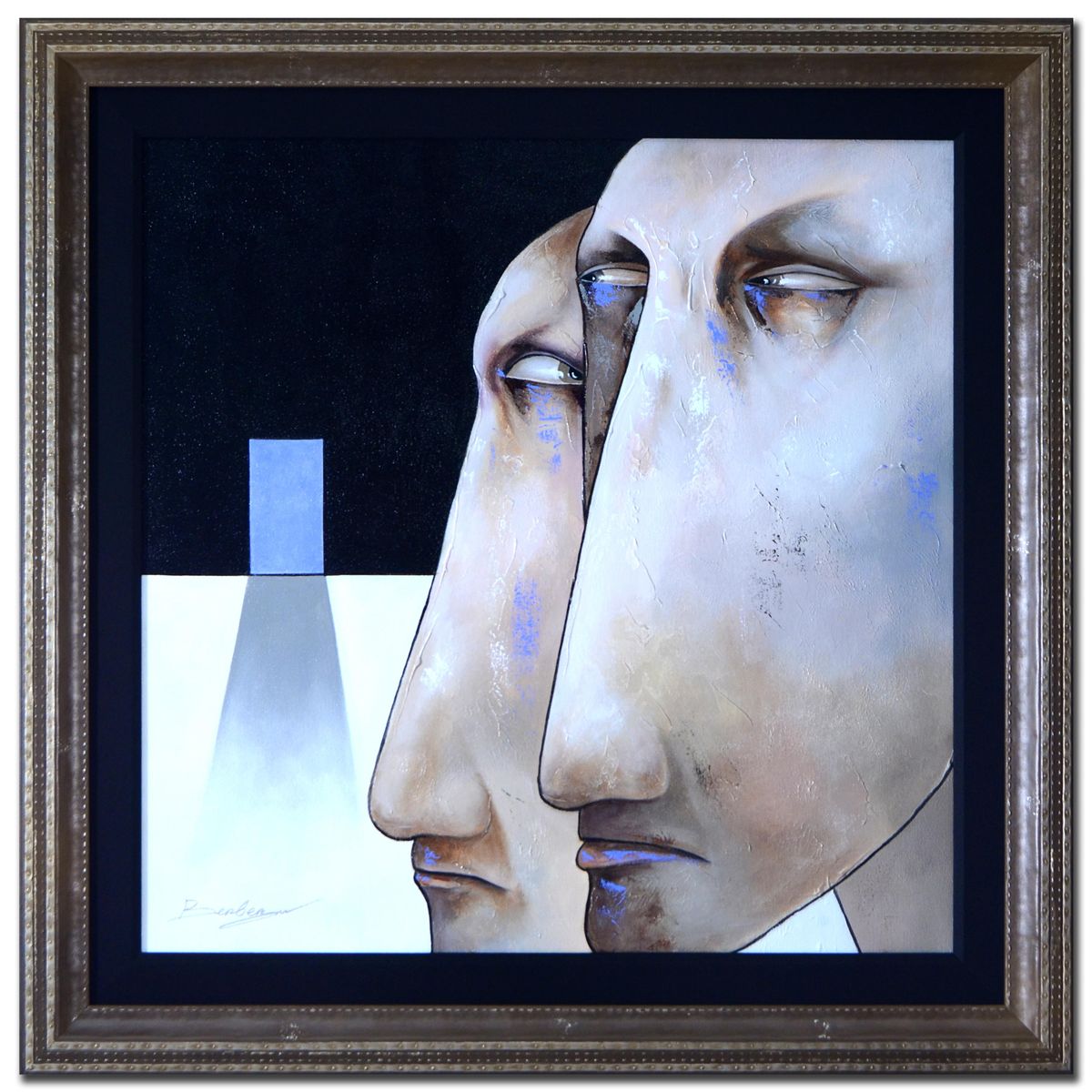 Cubist colorings and mesmerizing, evocative figures define the creations of gifted artist Ara Berberyan, known as Arbe. "Let's Get Out of Here" is an original acrylic painting on canvas by Ara "Arbe" Berberyan, hand signed by the artist! This artwork has been custom framed using acid free materials and is ready to hang. Measures approx. 38" x 38" (with frame); 29" x 29" (image).