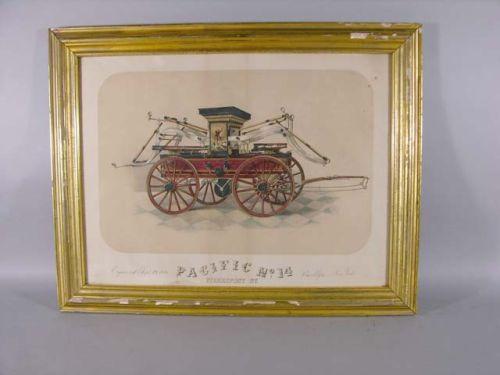 Original lithograph of a Pacific No.14 Fireman's water pumper, Brooklyn, NY. 1846. 22" x 17", small stain on bottom.