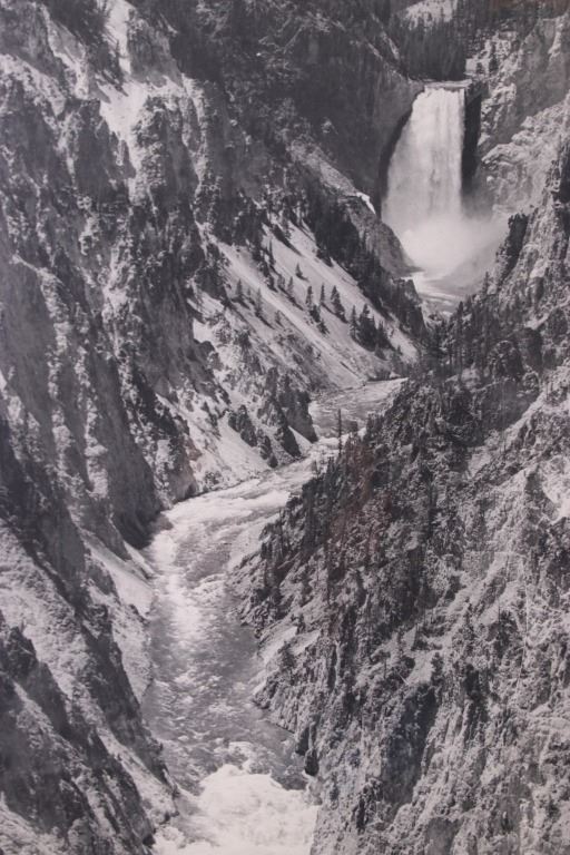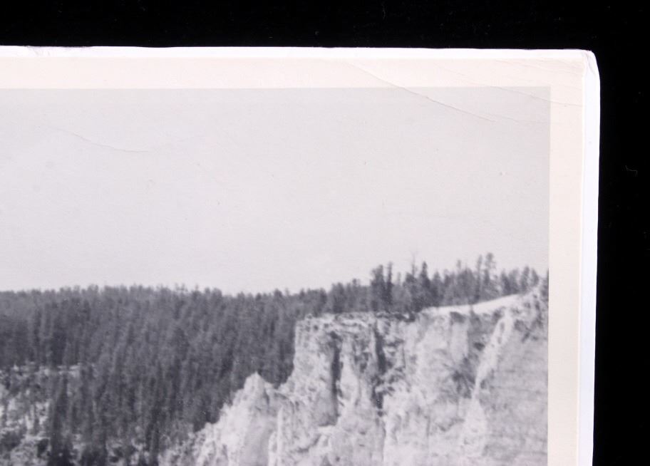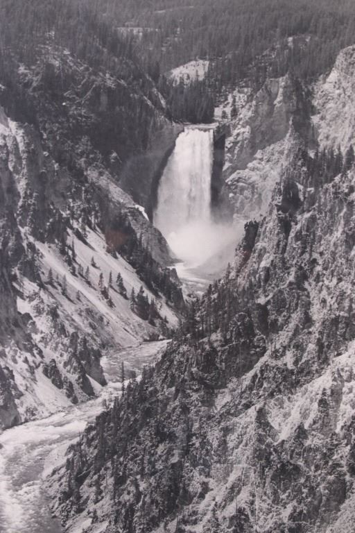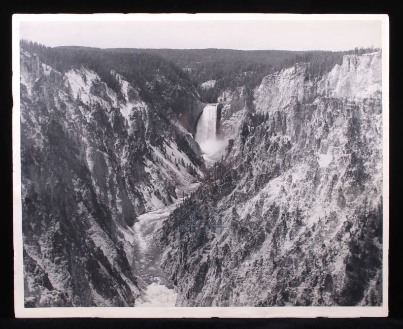 Offered in this lot is an original photograph of the Lower Yellowstone Falls, in Yellowstone National Park, Park County, Wyoming. The large photograph measures 19 1/2" x 15 7/8", and shows the waterfall as it enters the Grand Canyon of Yellowstone. The photograph shows excellent composition, and good craftsmanship in printing quality. The photograph shows good condition overall, with some slight edge wear, and very subtle creasing.