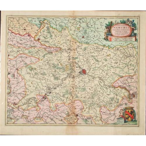 Original Map of Comitatus Namurci Emendata Delineatio, Nuperrime in Lucem dated c. 1670 made by VISSCHER in very good condition orig color at the size of 24'x21' Region: Europe: Belgium, Namur Catalogue: Louis Loeb- Larocque: Le Benelux, Cartographic et Topographie Anciennes, 1983 Volume AMPR: 1984