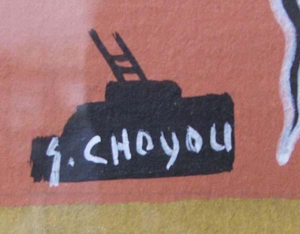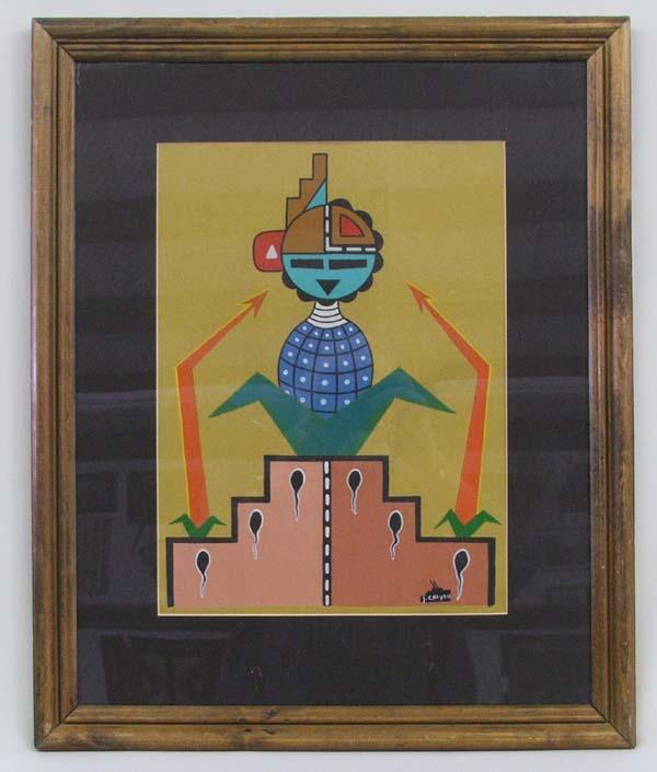 Original Native American Hopi Painting By George Choyou. Corn maiden. Framed in a wood frame, matted, under glass. Visual measures approx. 14''H x 10 1/2''W. Some water damage and denting on the picture. Buyers Pay Actual Shipping and Handling Charges(see terms and conditions for more information)