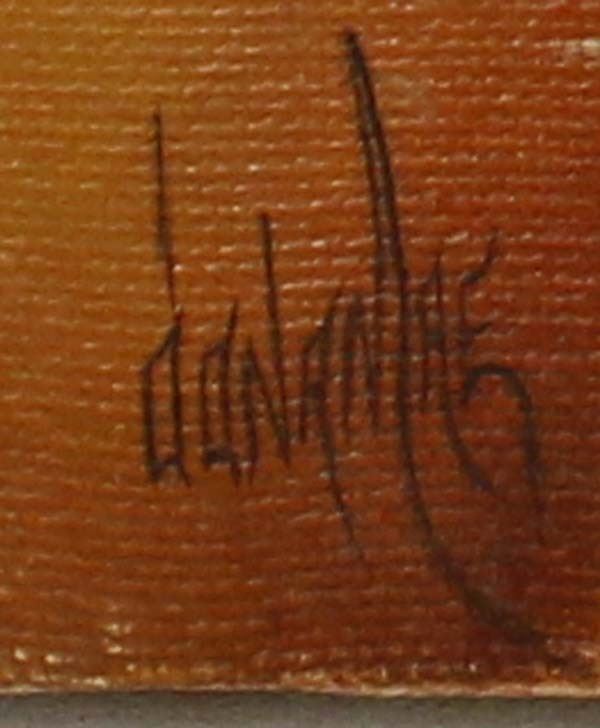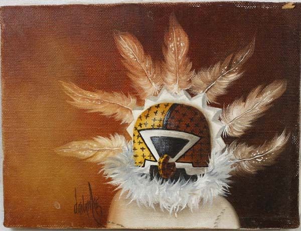 Original Vintage Native American Ahola Germination Spirit Kachina Painting, on canvas, measures 6'' x 8'', signed by artist, possibly Dananlae, on canvas