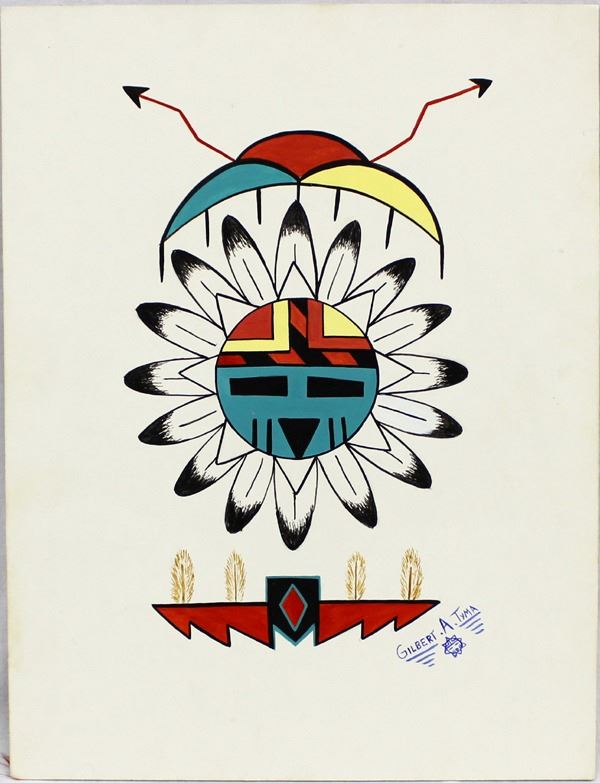 Original Native American Hopi Painting by Gilbert A. Tyma, on thick card stock, signed by the artist, measures 11'' x 14''