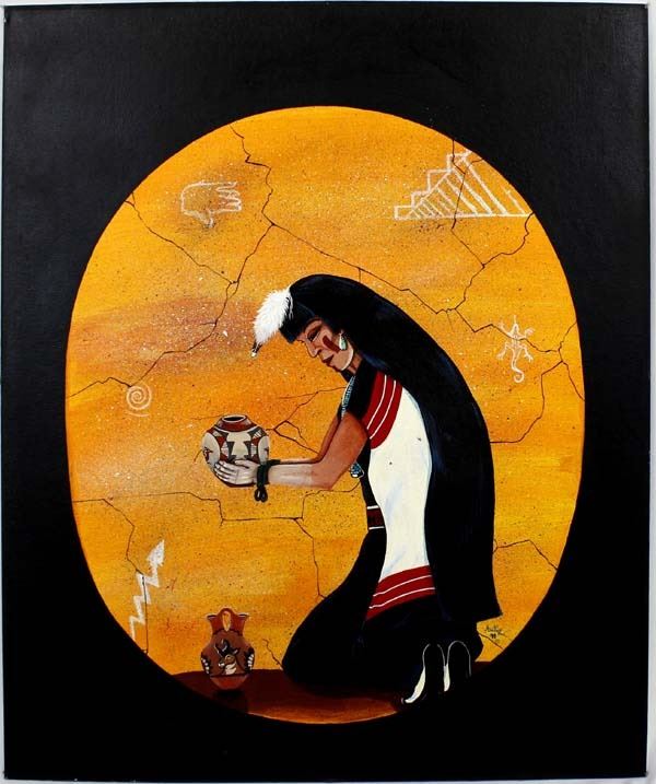 Original 1999 Native American Painting by Ortiz, measures 24'' x 20'', on artist's board and is signed