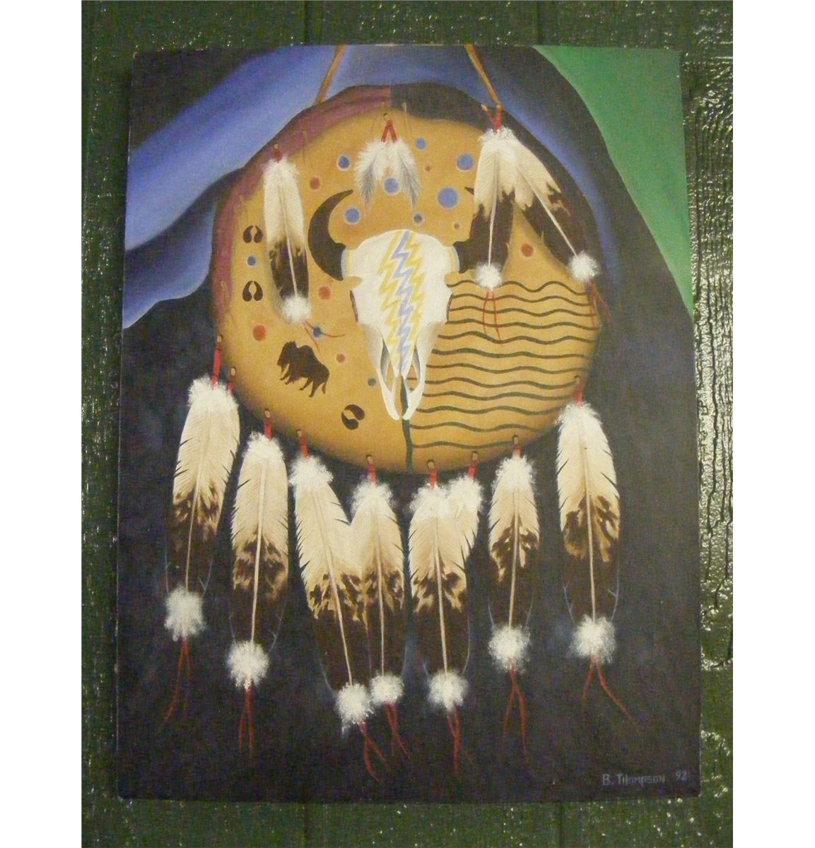 Very Nice Indian Painting. Acrylic on canvas, by Artist Bonnie Thompson, 1992. 18"x24"Condition: KSK Auctions encourages in-person inspection by bidders whenever possible. Condition requests can be obtained via email (kskart@gwtc.net) or by telephone (605-745-4360). Any condition statement given, as a courtesy to a client, is an opinion only and should not be treated as a statement of fact or a warranty of condition. All lots are sold "As Is" under KSK Auctions Terms & Conditions.