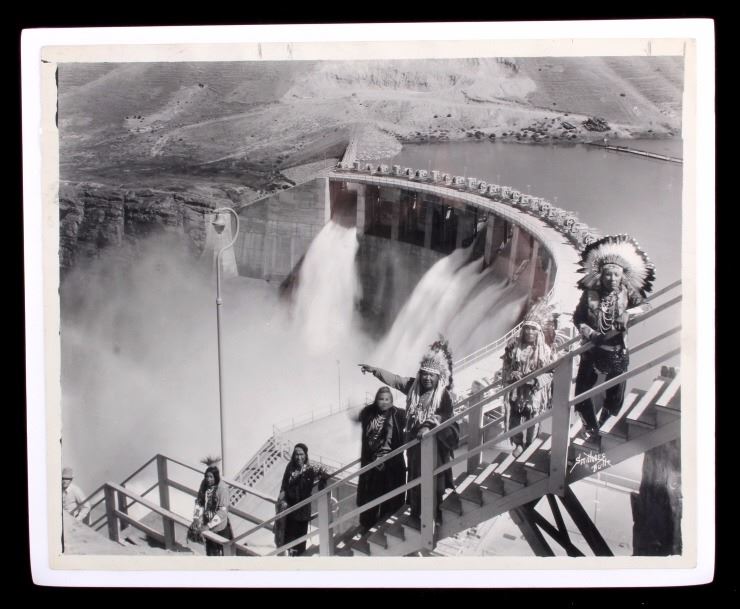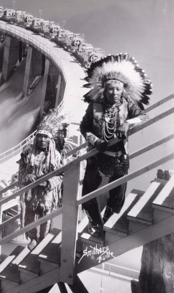 This is an original Native American photograph from Butte, Montana. The photo was taken at Kerr Dam near Polson, Montana and shows several Blackfeet Indians. The photograph is marked "Smithers Butte". The photo is in good condition. It measures 8" x 10".