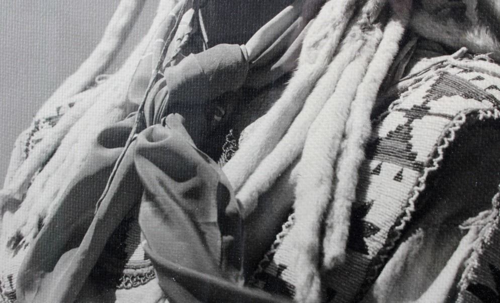 This is an original Native American Indian photograph by Walter S. Craig from Omaha, Nebraska. The photograph shows the Indian chief in a full headdress with beaded headband and armbands. The photograph has been blind stamped by the photographer in the lower right corner "Walter S. Craig Photograph Omaha Nebr.". The photograph is in good condition. The frame measures 11.25" x 14.5".