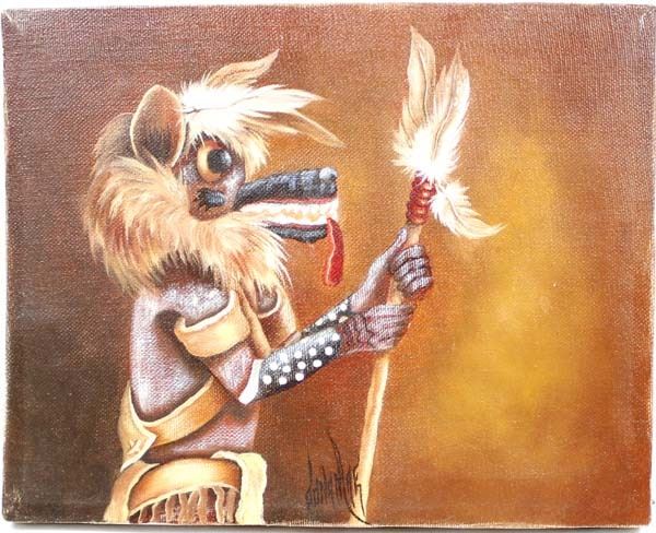 Original Native American Wolf Kachina Painting, on canvas, measures 8'' x 10'', signed by artist, possibly Dananlae