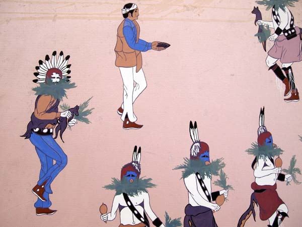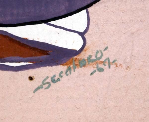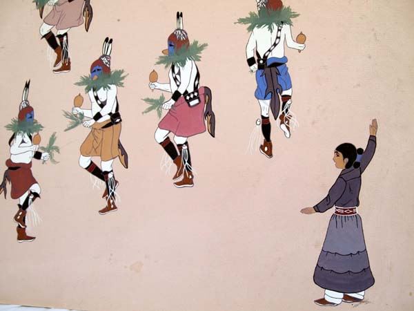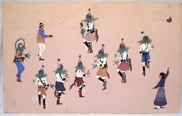 1967 Original Native American Navajo Painting by J. Secatero 1945-2010, signed and dated in lower left corner, measures 32''L x 20''H, on artist board. Painting needs to be professionally cleaned and thre are two small tears in the bottom left hand corner of the painting. Artist Bio: Johnny Secatero (1945 - 2010) Din‚ Navajo. His sense of scale and accuracy of detail were standard fare for him. He was a well-respected painter and is very collectible as an artist. His paintings appear is numerous private and public collections. His awards are numerous.