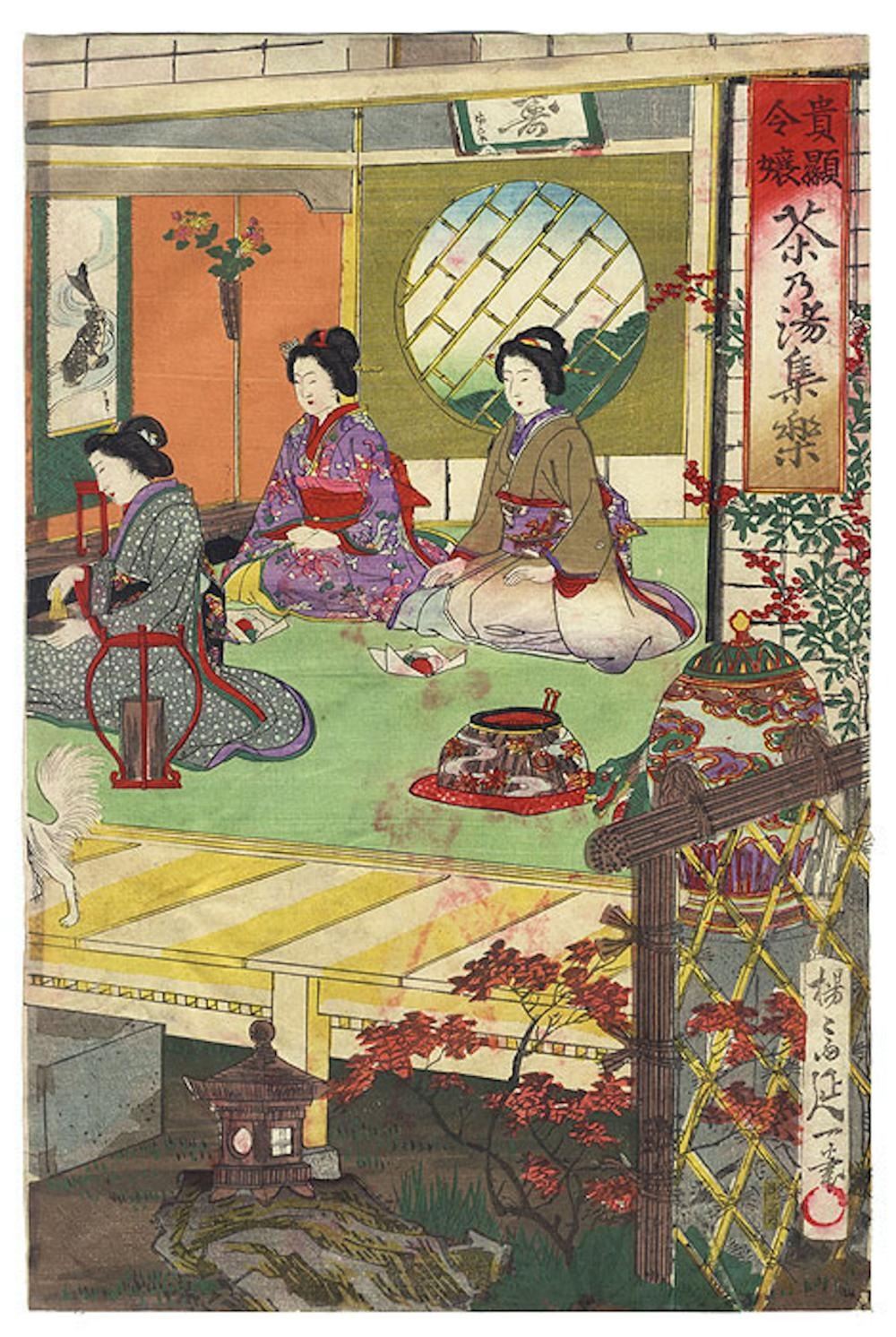 Original Nobukazu (1874 - 1944) Japanese Woodblock Print, This print with nice color and detail as shown. Some staining and rubbing. Please see photos for details. Oban, approximately 9 1/2" x 14 1/2"