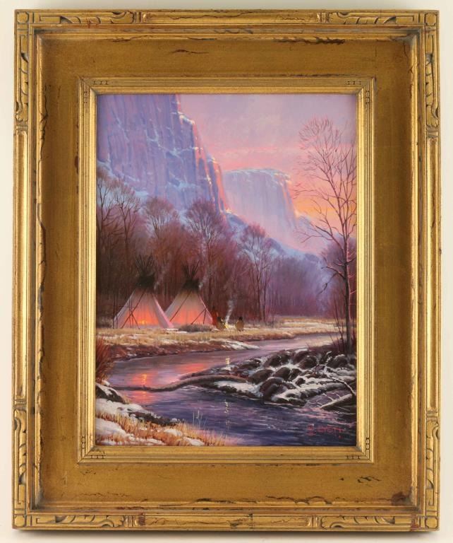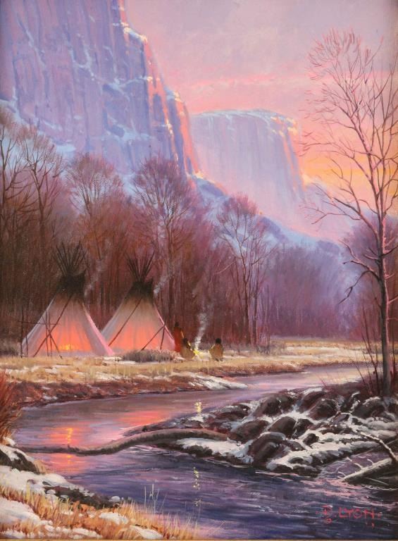 by Dustin Lyon entitled 'Winter Night' measures 18"x22" retail price $1500 in gold frame.