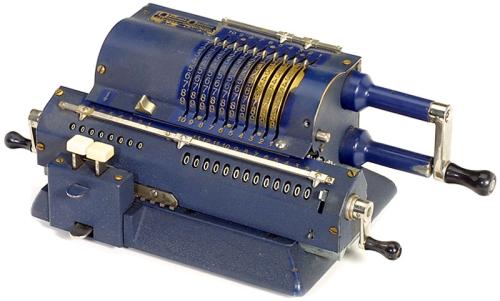 Original-Odhner Mod. 127 (BLAU!) Schwedische Sprossenradmaschine mit 10-, 8- bzw. 13-stelligen Rechenwerken. Rare blue (!) version of the original Odhner Mod. 127. – (2/2) – € 120/220 – (202/14)